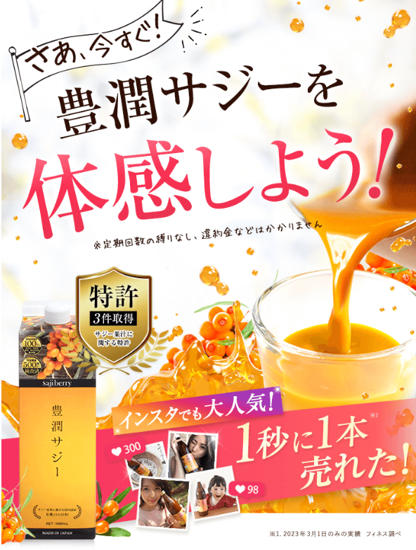 長女の時は、夜間授乳の時布団から出られなかったんですが、次女の時はサジーのおかげか、朝から動けてお世話ができました。1年間飲み続け、もうサジーなしでは育児するのが怖いぐらいです。(笑)これからも飲み続け、イキイキママでがんばります!
